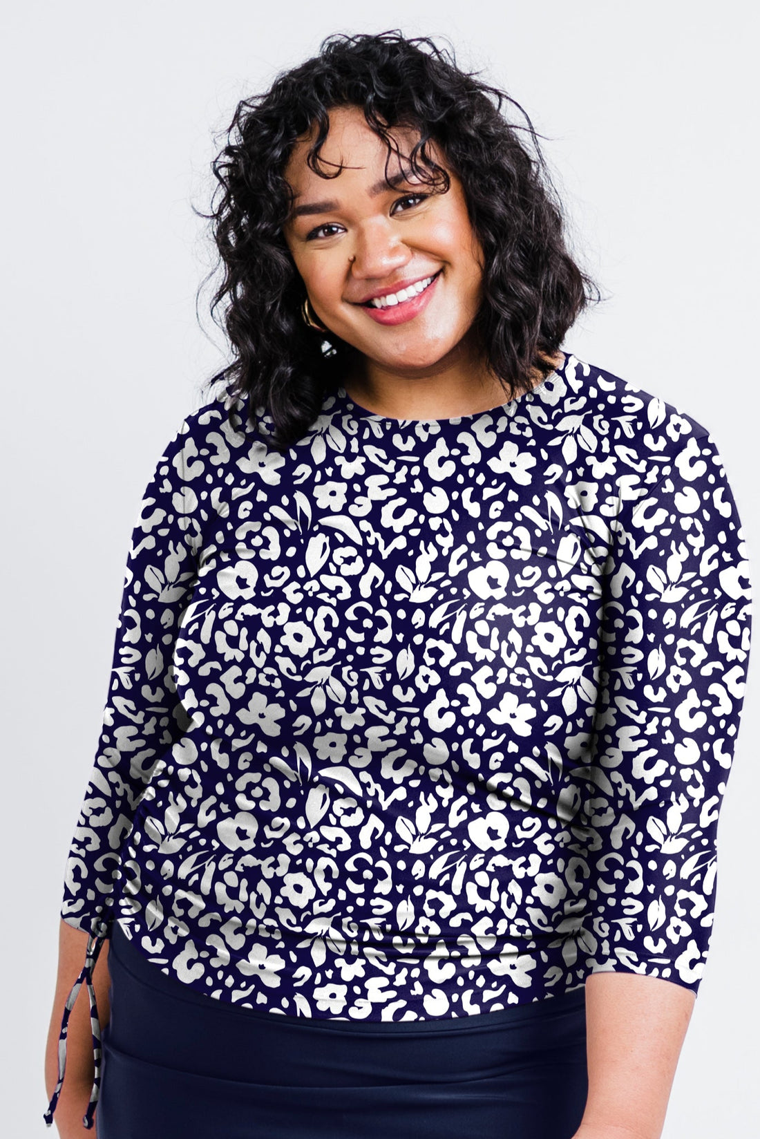 This round neck, 3/4 sleeve swim top is a must-have for a day in the...