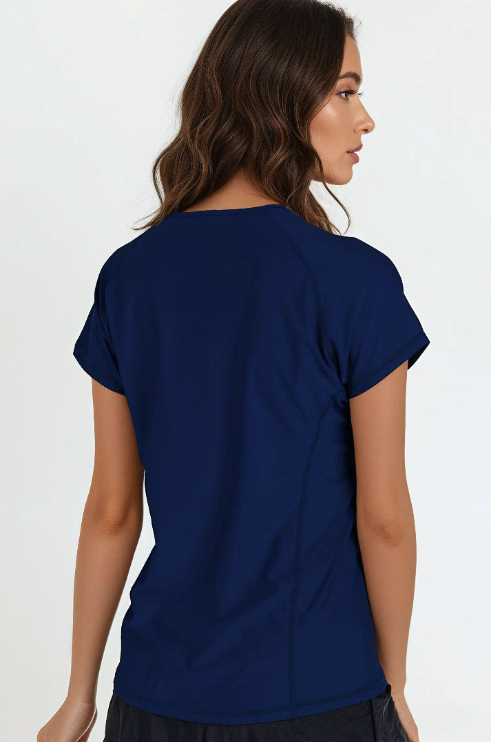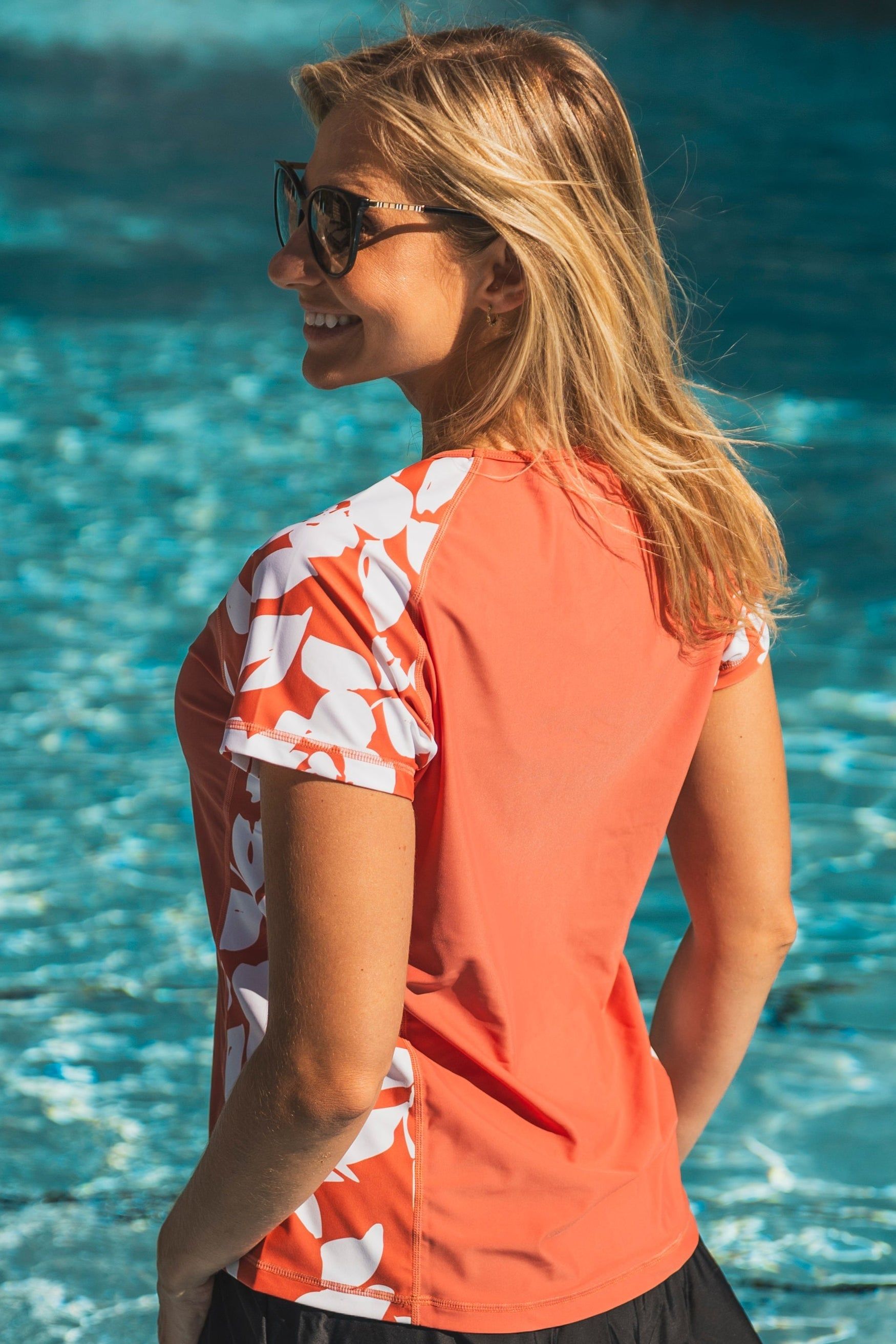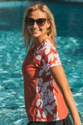 Beat the heat and the sun with the Loose Fit Adele Swim Top! This stylish crew neck with slimming adjustable side ruching is perfect for the pool, beach, or running around on a sunny day - did we mention it also has UPF 50+ sun protection? Sold as top only. Pair with your favorite swim bottom to complete the look.