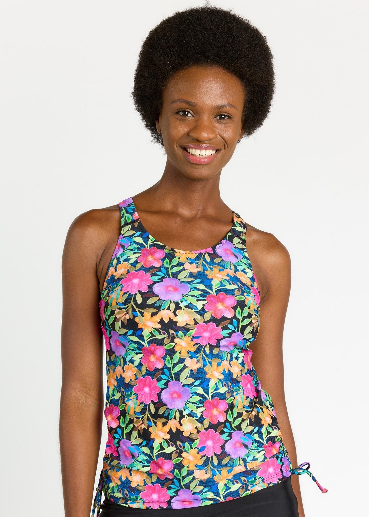 The Maya Swim Top is perfect for a sunny day. The round neckline, racerback cut and built-in bra offer stylish comfort and support while the adjustable side ruching gives you a better fit. Sold as top only. Pair with your favorite swim bottom to complete the look.