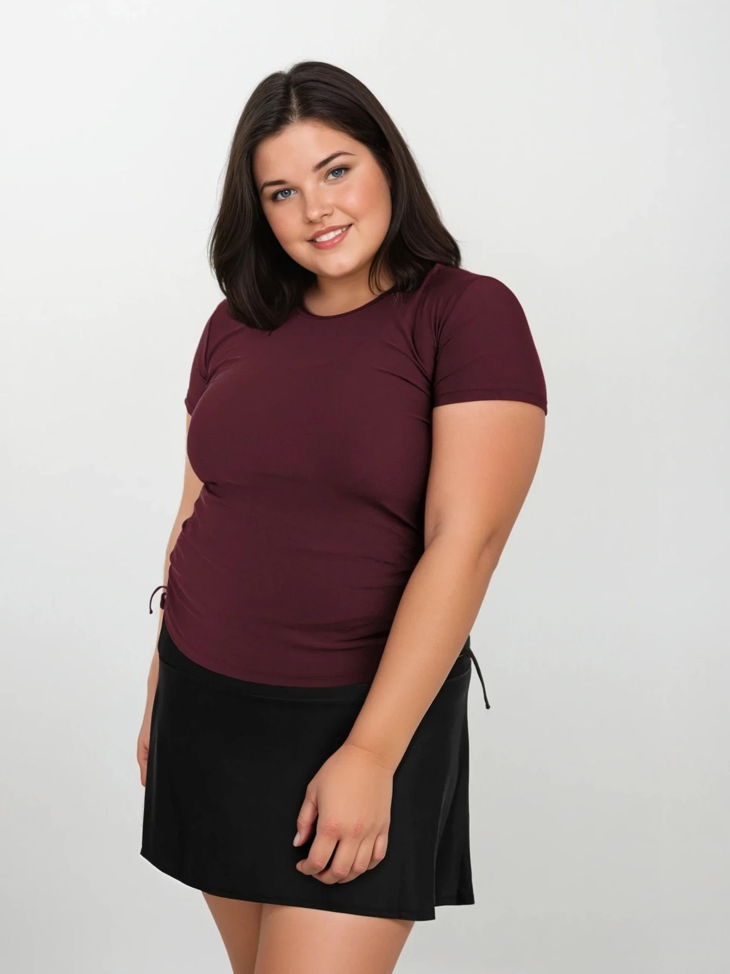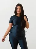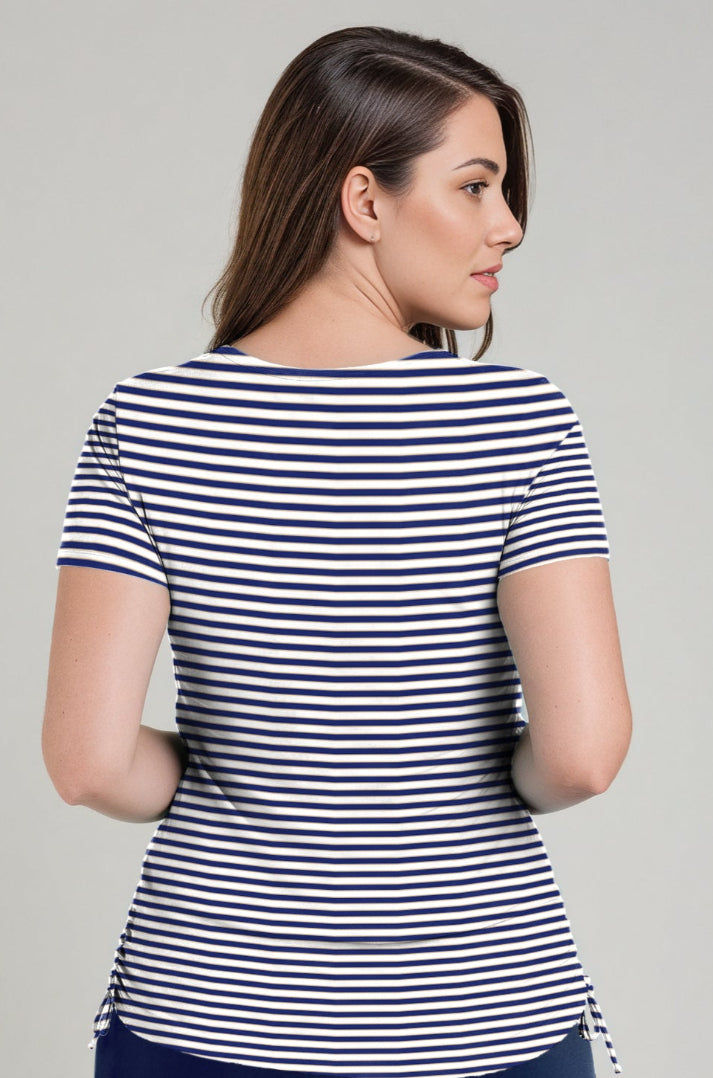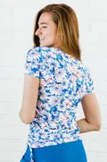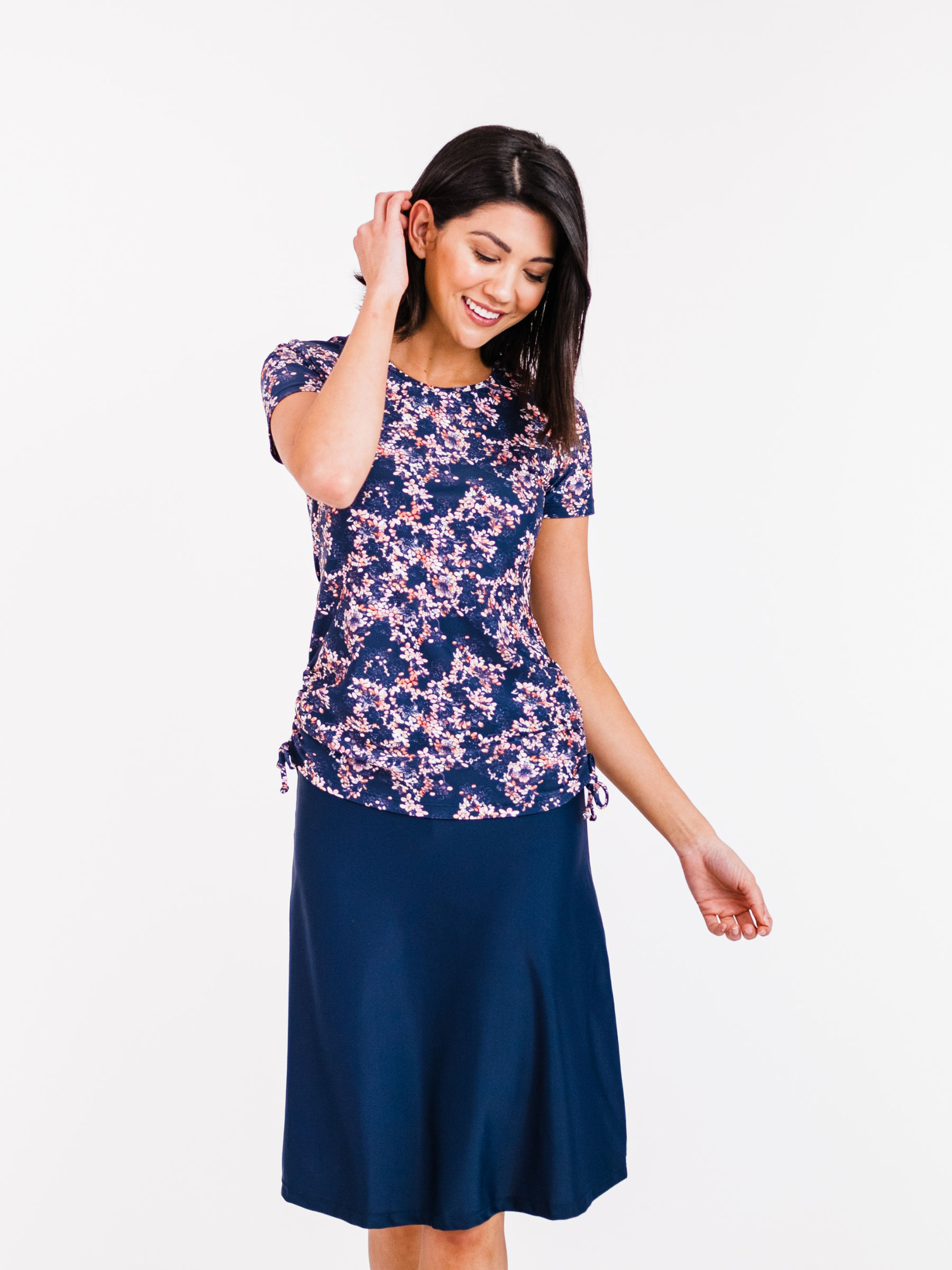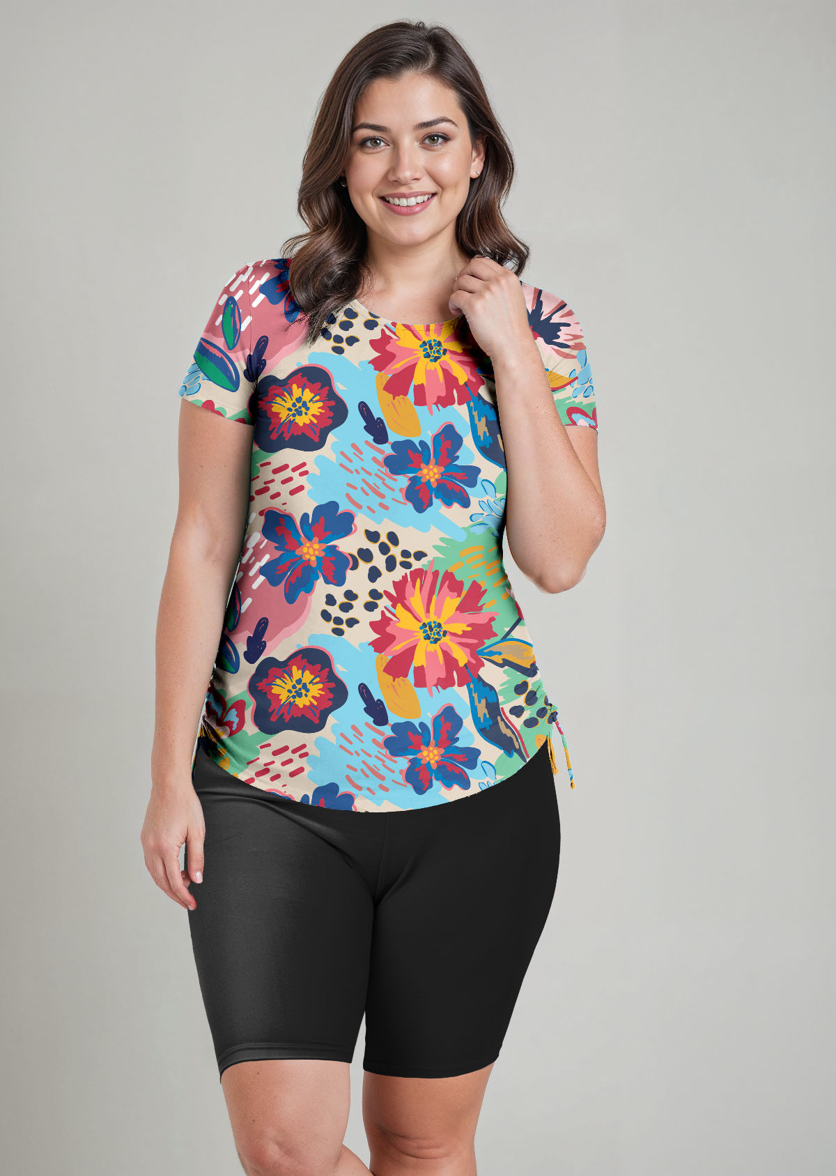 Beat the heat and the sun with the Short Sleeve Adele Swim Top! This stylish crew neck with adjustable side ruching is perfect for the pool, beach, or running around on a sunny day - did we mention it also has UPF 50+ sun protection? Sold as top only. Pair with your favorite swim bottom to complete the look.