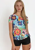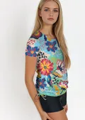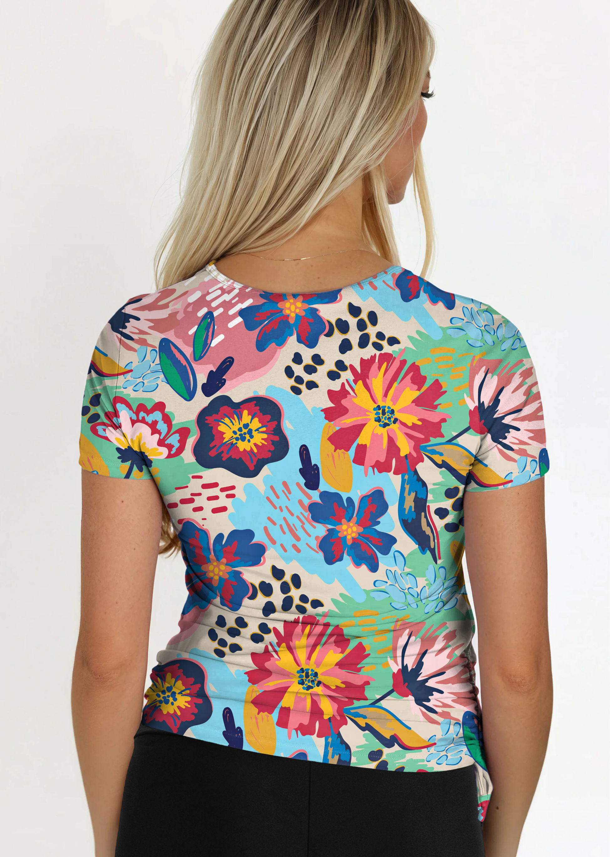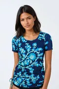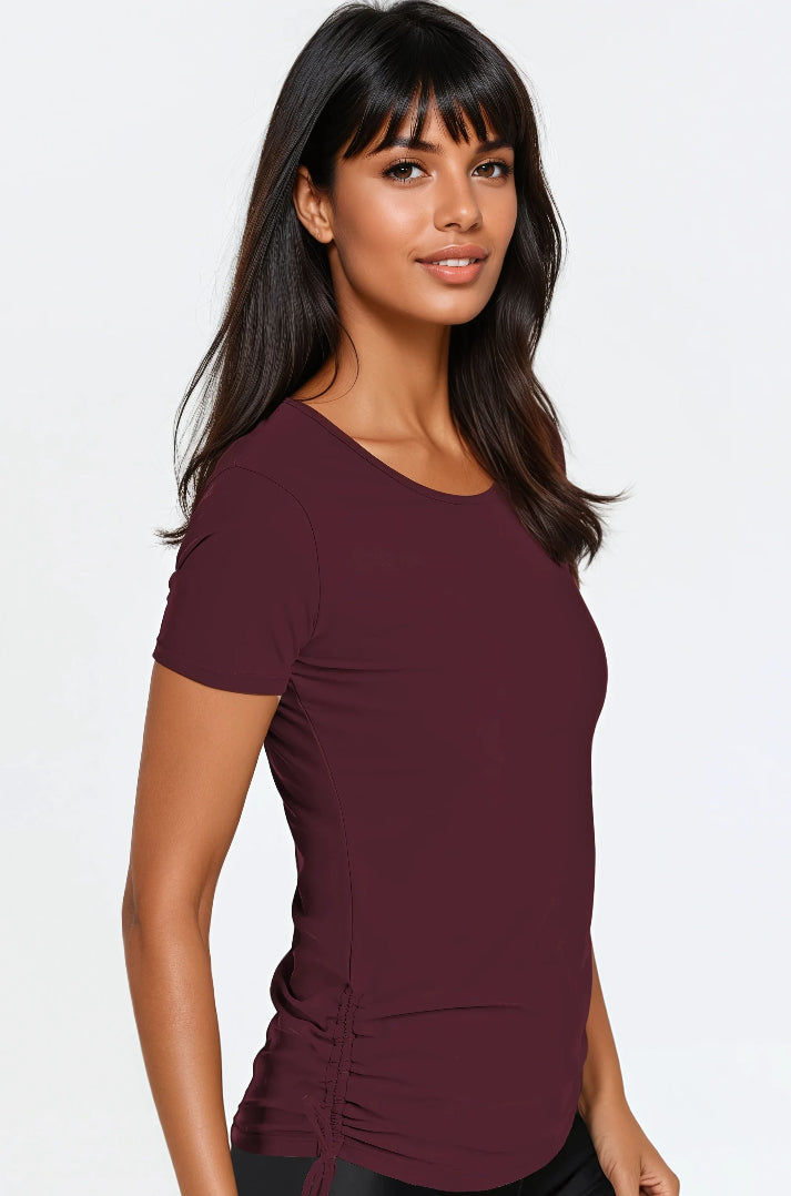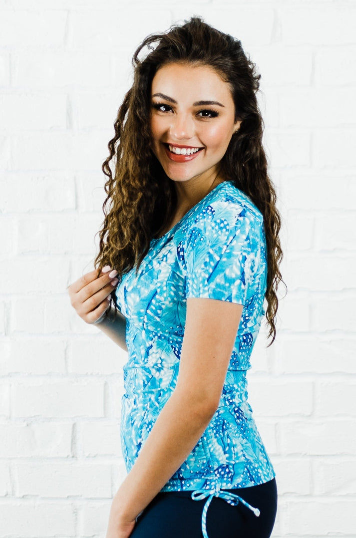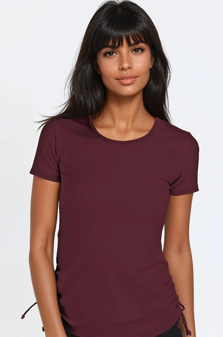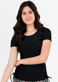 Beat the heat and the sun with the Short Sleeve Adele Swim Top! This stylish crew neck with adjustable side ruching is perfect for the pool, beach, or running around on a sunny day - did we mention it also has UPF 50+ sun protection? Sold as top only. Pair with your favorite swim bottom to complete the look.