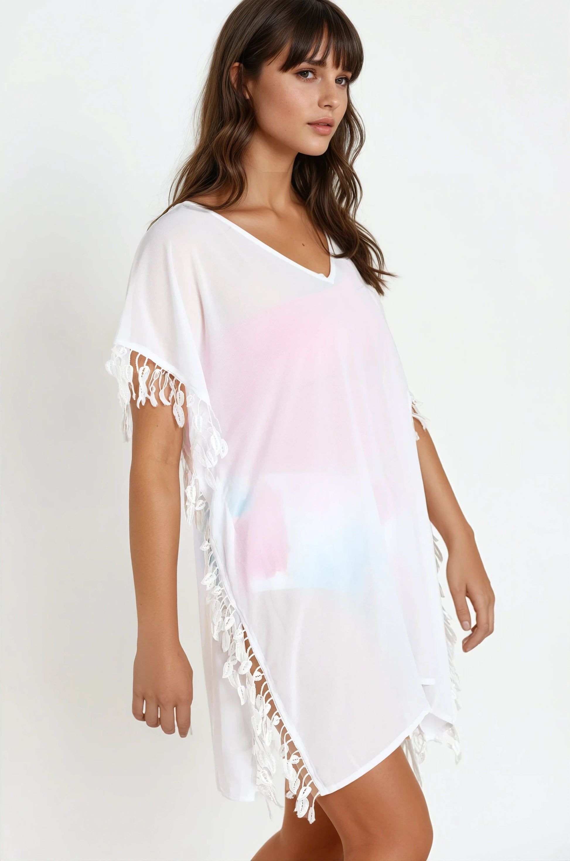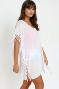 A lightweight layer with effortless charm, the Chiffon Beach Cover Up is your go-to for sunny strolls and breezy beach days. Designed with flowy dolman sleeves, flirty tassel details, and double side slits, it adds a touch of glam while keeping things cool. Throw it over your favorite swimsuit for instant style and comfort.