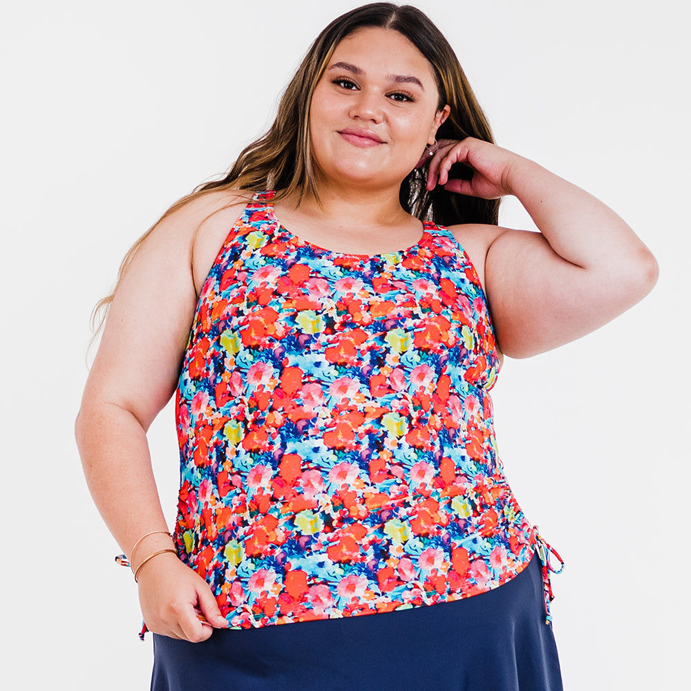 This tankini swim top isn't your typical tankini. This new design features a higher neckline and closed back to keep you comfortable and covered. And the best part? It has a built-in bra! Sold as top only. Pair with your favorite swim bottom to complete the look.