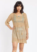 Cover up in effortless style with this crochet beach dress — the perfect swimwear layer for sunny days. Designed with a relaxed fit, mid-thigh length, side slits, and ¾ sleeves, this lightweight swim cover-up blends fashion and function for beach days, poolside lounging, or tropical getaways. A must-have in every beachwear wardrobe!