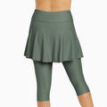 Get coverage, comfort, and confidence all in one with this flared swim skort featuring built-in capri leggings. Designed with a high-rise, wide waistband and quick-dry fabric, it’s perfect for swimming, strolling, or paddleboarding. Wear it over your bikini bottom for a stylish and sun-smart swimwear bottom that moves with you.