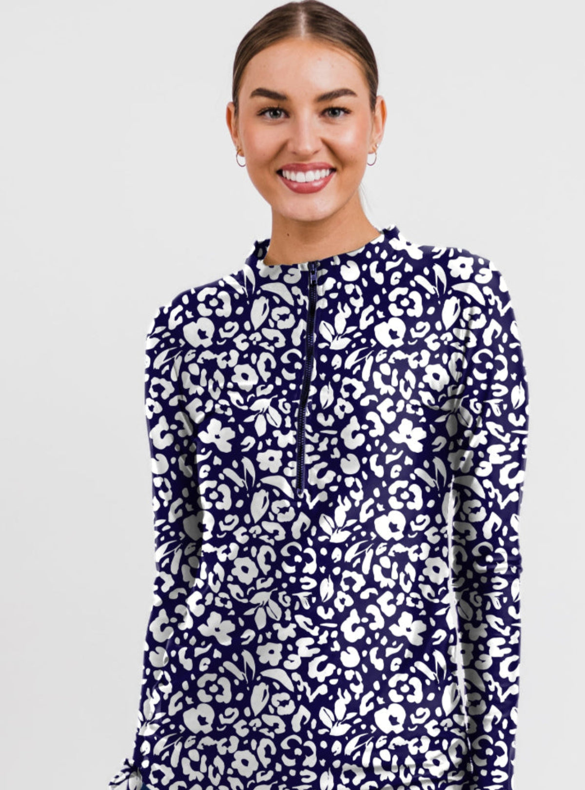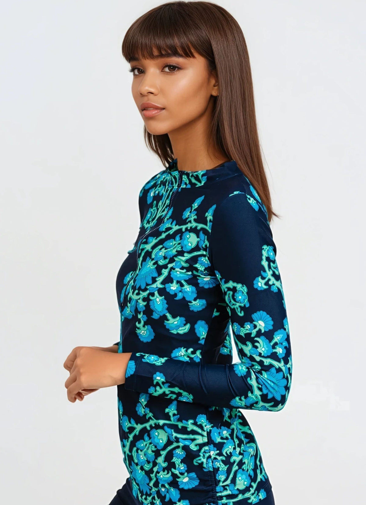 Sun-smart and stylish, the Half-Zip Nora Swim Top is all about coverage with a flattering twist. Featuring long sleeves, UPF 50+ protection, and side ruching for a curve-enhancing fit, this quick-dry swim top keeps you comfy and confident. The mock neckline and half-zip closure add just the right sporty touch.
