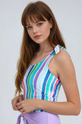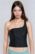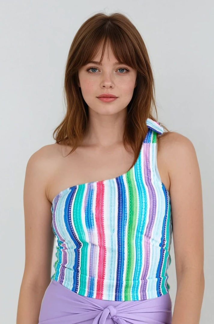 Chic and supportive, the One Shoulder Swim Top features a flattering self-tie strap, built-in bra with removable cups, and quick-dry fabric for all-day comfort. Sold as top only. Pair with any Calypsa swim bottom to complete the look.