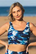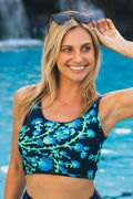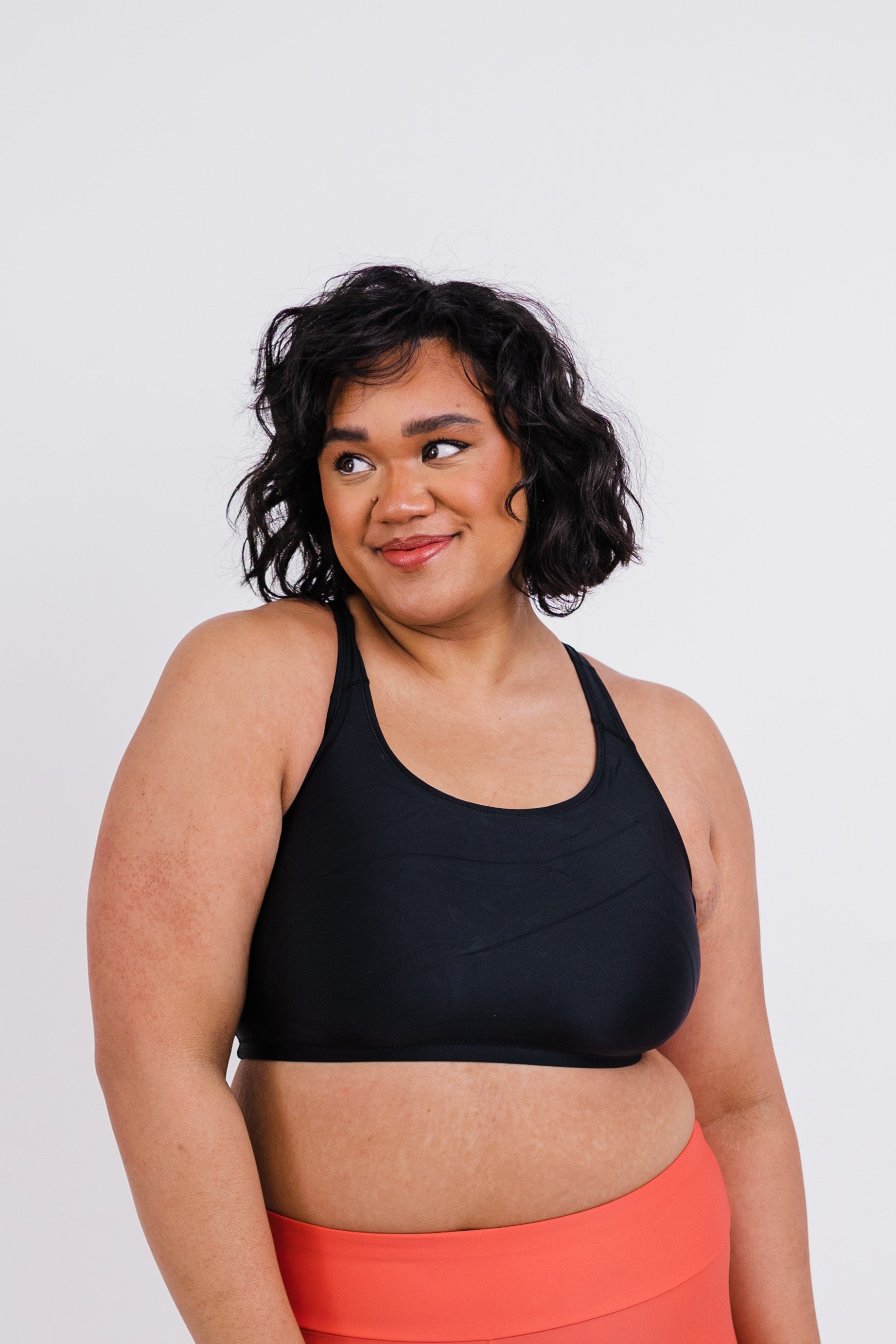Meet your new swim essential! With a flattering scoop neckline, modern racerback, and comfy longline fit, this swim bra blends style and support — no underwire needed. Wear it your way with removable cups for the perfect feel!