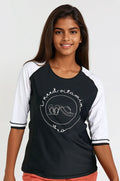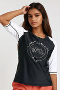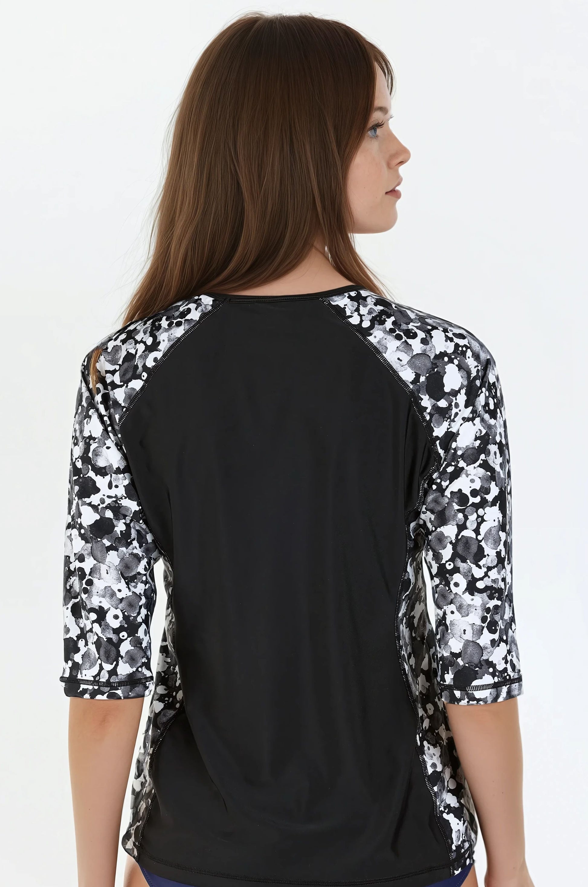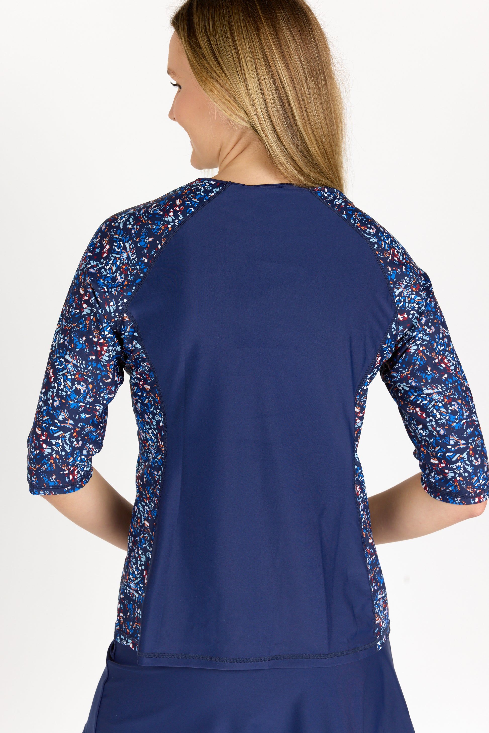 The Loose Fit Margaux Swim Top gives you extra coverage without compromising style. We love the relaxed fit, 3/4 length raglan sleeves and round neckline but one of the best features of this swim top is its slimming contrasting side panels. Sold as top only. Pair with your favorite swim bottom to complete the look.