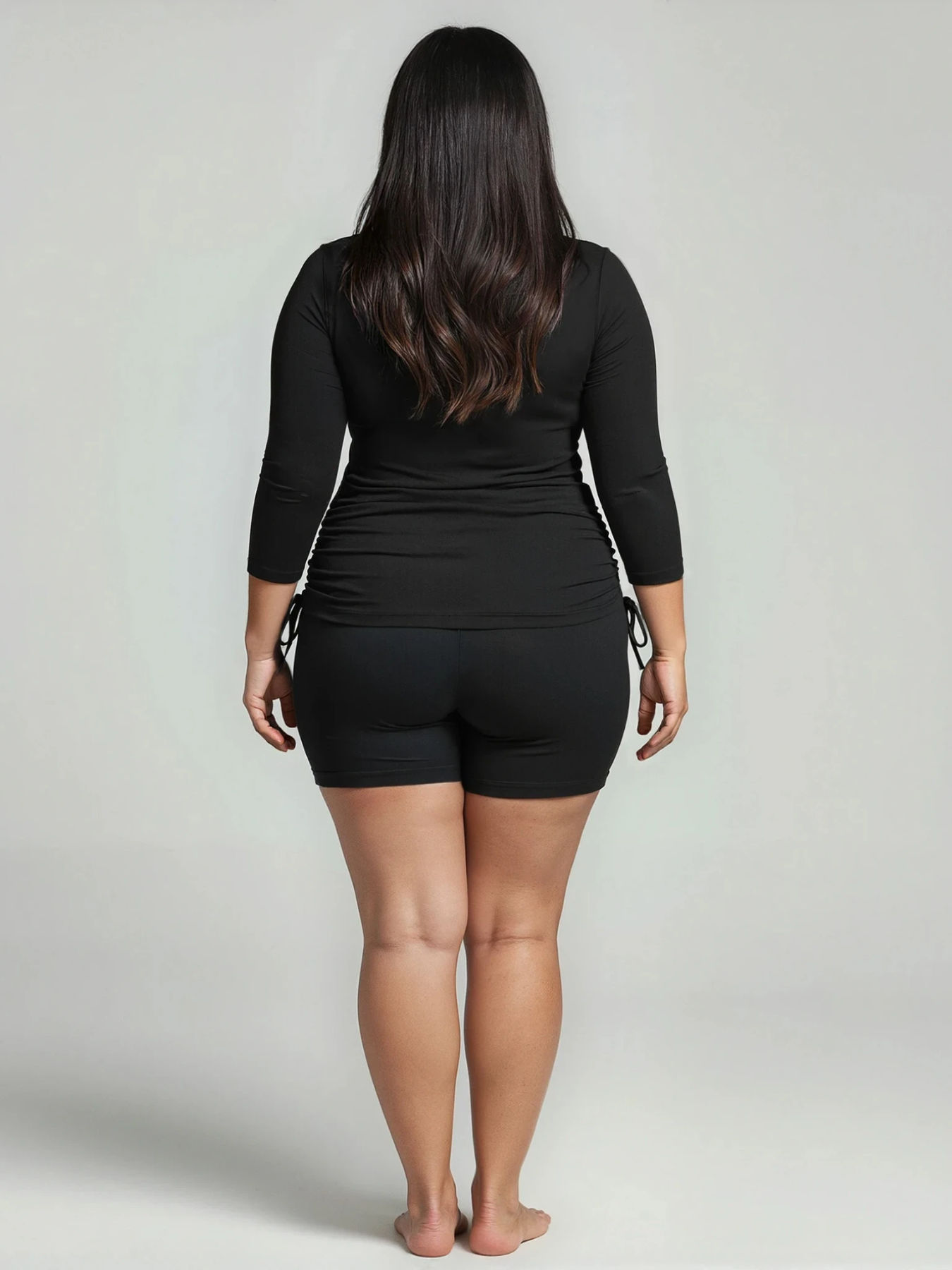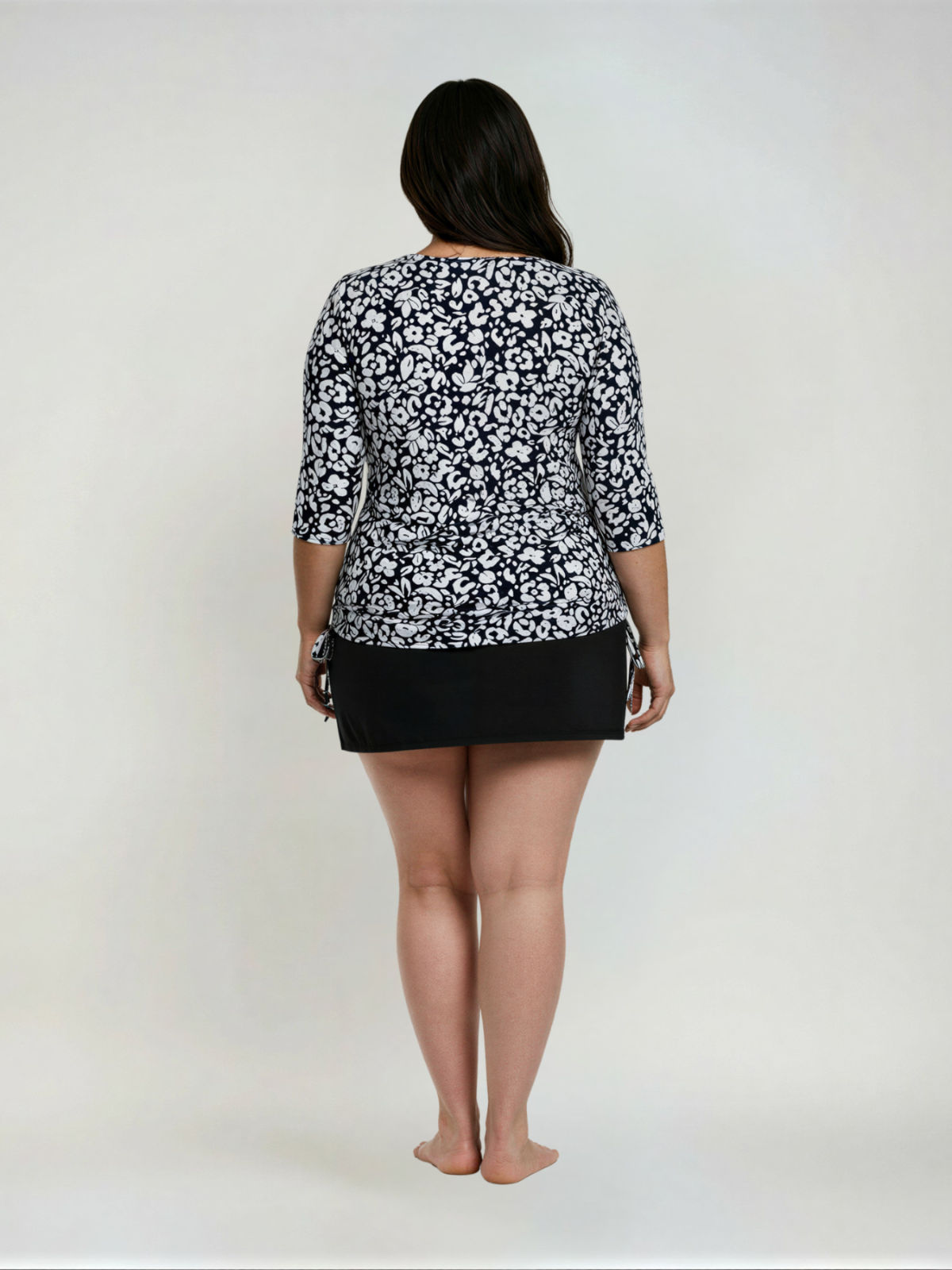 - Side ruching creates a flattering cinched look