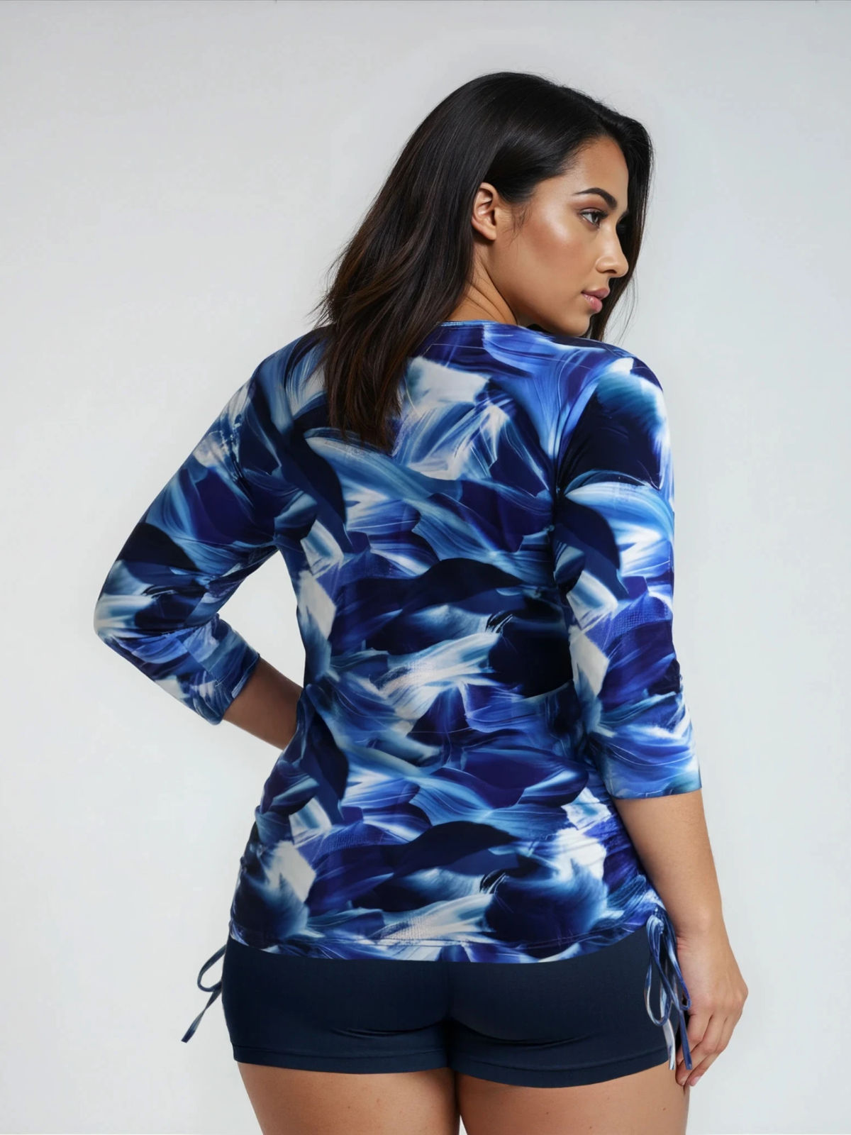 This round neck, 3/4 sleeve swim top is a must-have for a day in the sun. Complete with side ruching and UPF 50+ sun protection, the Margaux Swim Top is perfect for swimming, hanging by the water and water sports. Sold as top only. Pair with your favorite swim bottom to complete the look.