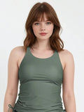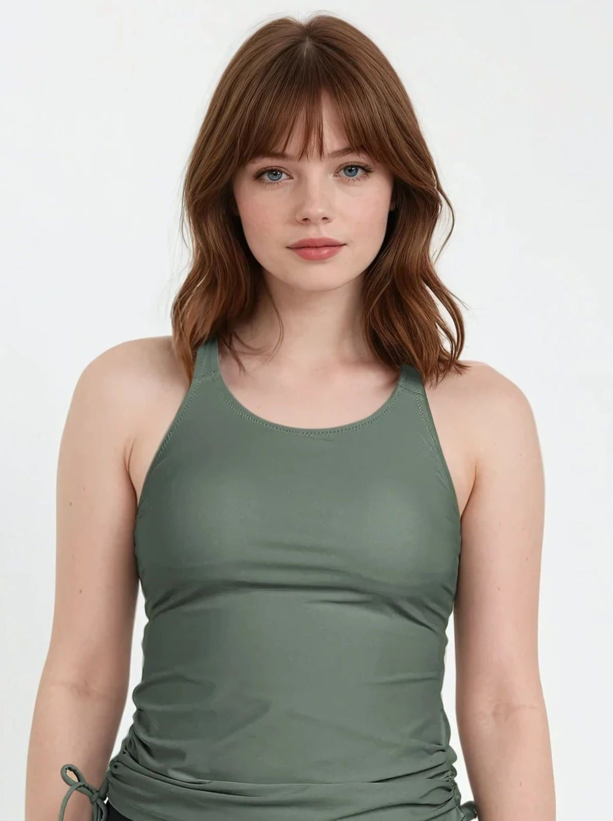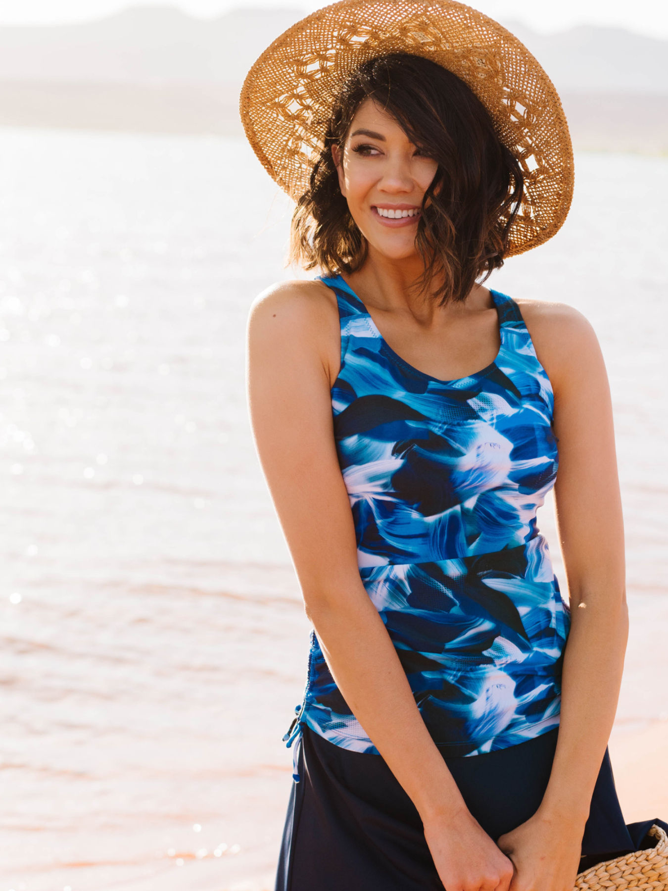 Comfortable, flattering, and made to move—the Maya Tankini Swim Top is a go-to for effortless swim style. Featuring side ruching, a round neckline, racerback, and built-in bra with removable cups, this fitted tankini blends ease and confidence in and out of the water. Pair it with your favorite Skort, Swim Legging or Bikini Bottom for an effortlessly polished beach or pool look.