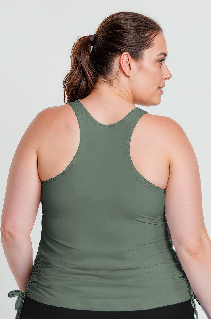 Enjoy the perfect balance of style and performance with the Maya Tankini Swim Top With Built-In Bra. Featuring a round neckline and racerback design, this tankini top delivers structured support with a secure fit and side ruching for a flattering silhouette. Quick-dry fabric with UPF 50+ sun protection makes it ideal for all your swim days.