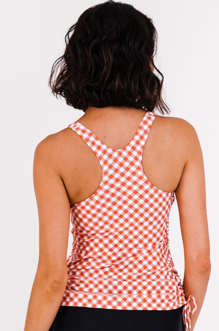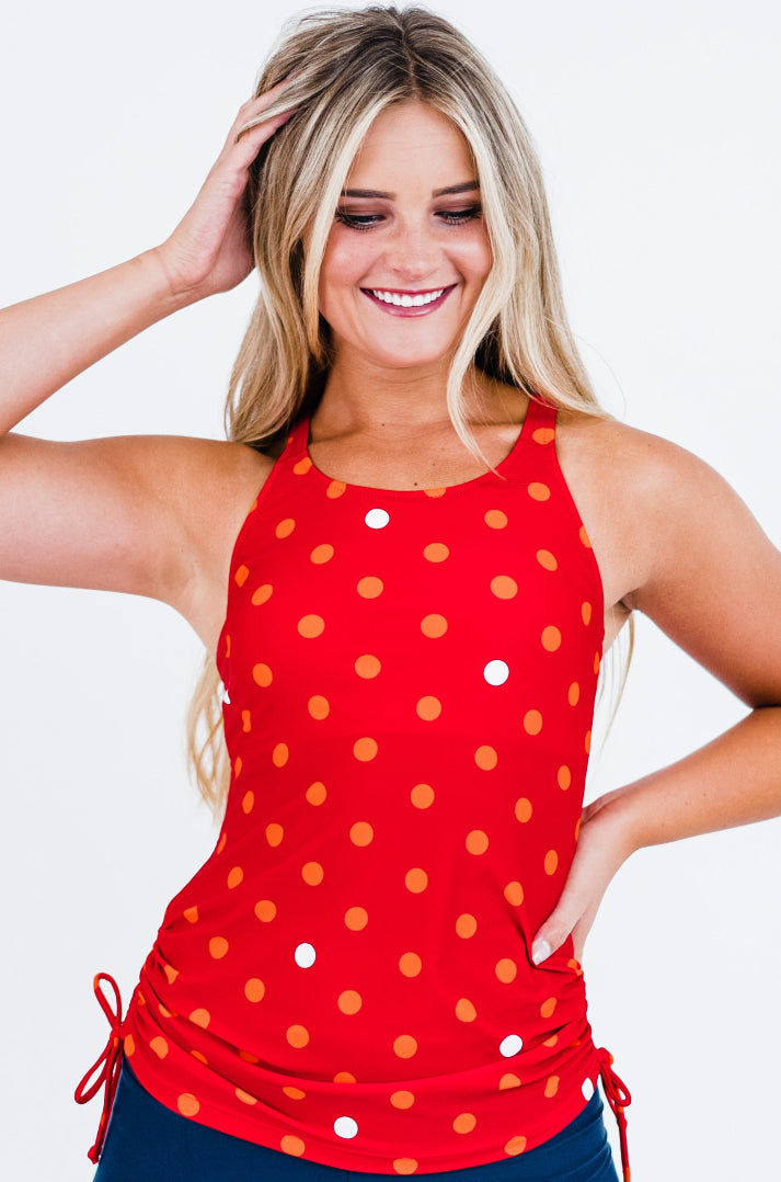 Chic, supportive, and summer-ready — the Maya Tankini Swim Top is a must-have in any swimwear lineup. With its flattering side ruching, round neckline, and built-in bra with removable cups, this fitted tankini offers comfort and style in and out of the water. Pair it with your favorite bikini bottoms for an effortlessly polished beach or pool look.