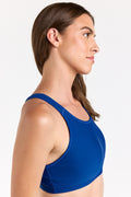 Move freely and feel secure in the Racerback Swim Bra. Designed with a sporty racerback silhouette and a round neckline, this swim bra offers a snug fit with light support that stays in place during swimming and active water movement. Removable pads allow you to customize your coverage and shape, all without underwire.