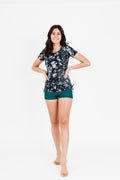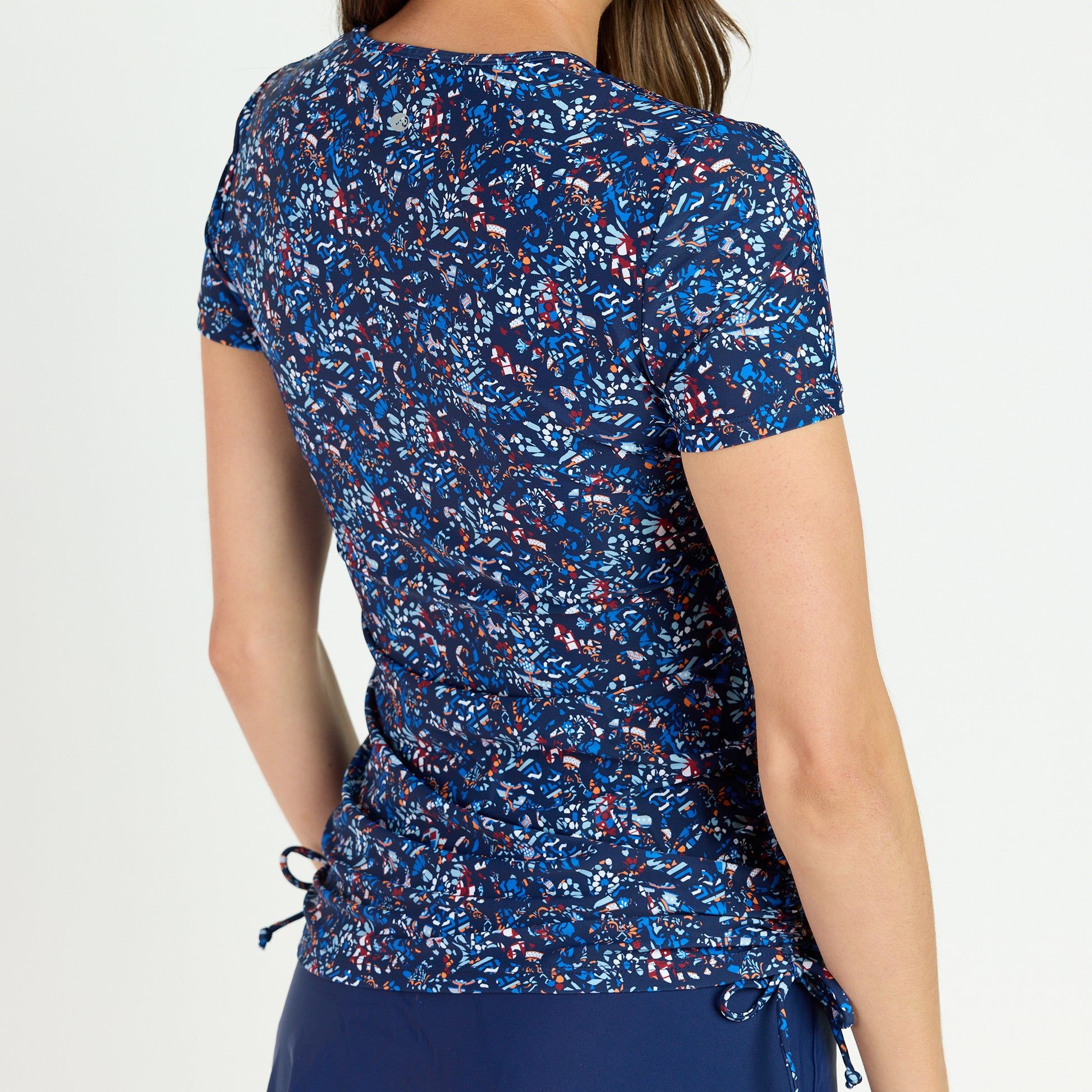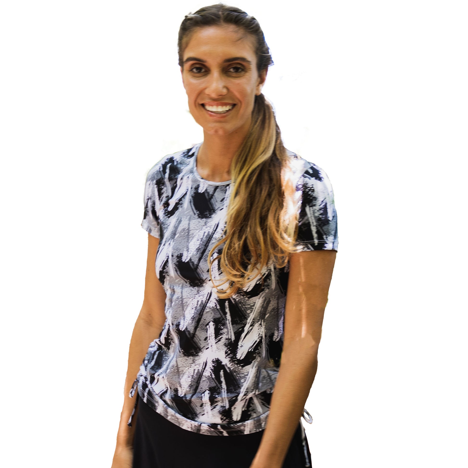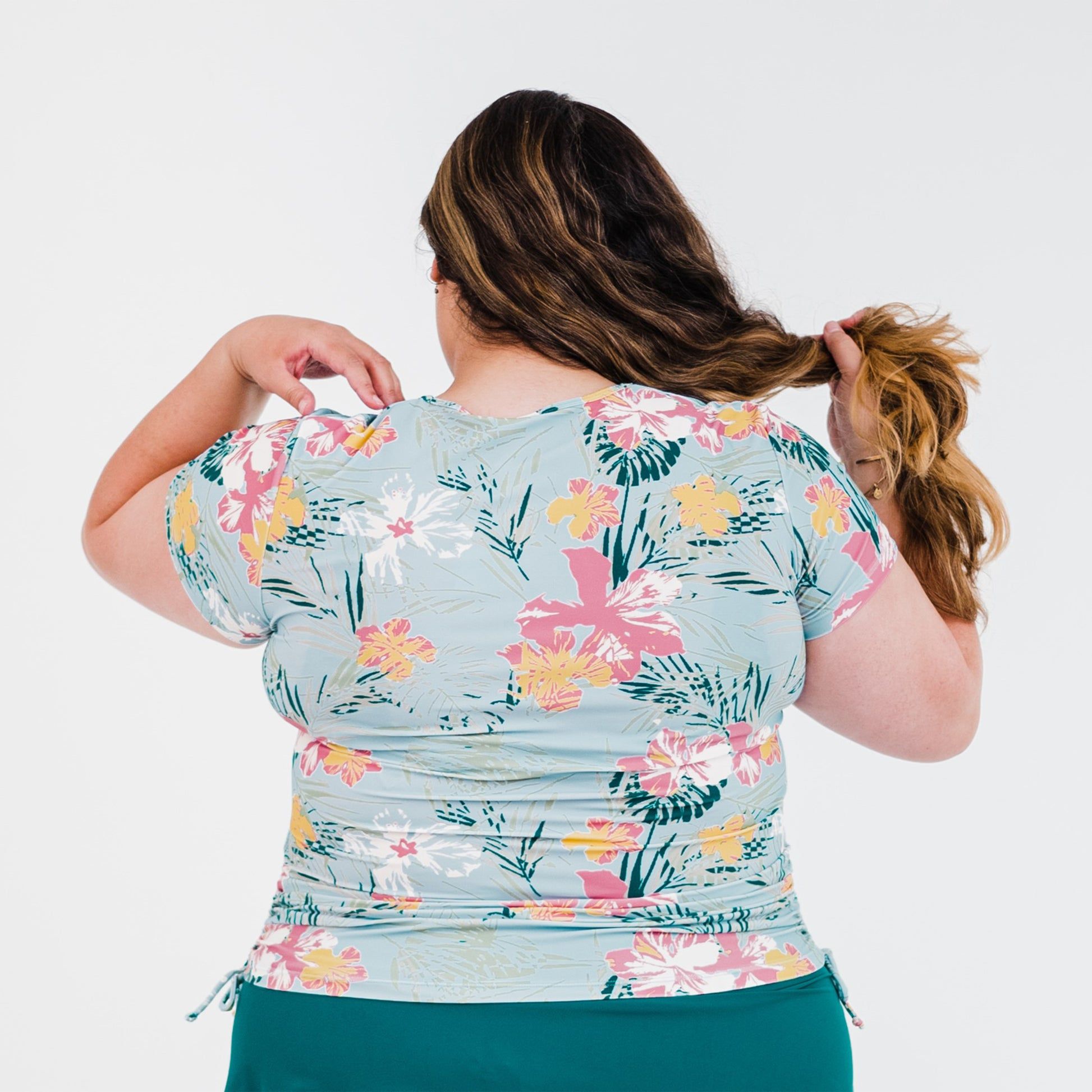 Beat the heat and the sun with the Short Sleeve Adele Swim Top! This stylish crew neck with adjustable side ruching is perfect for the pool, beach, or running around on a sunny day - did we mention it also has UPF 50+ sun protection? Sold as top only. Pair with your favorite swim bottom to complete the look.