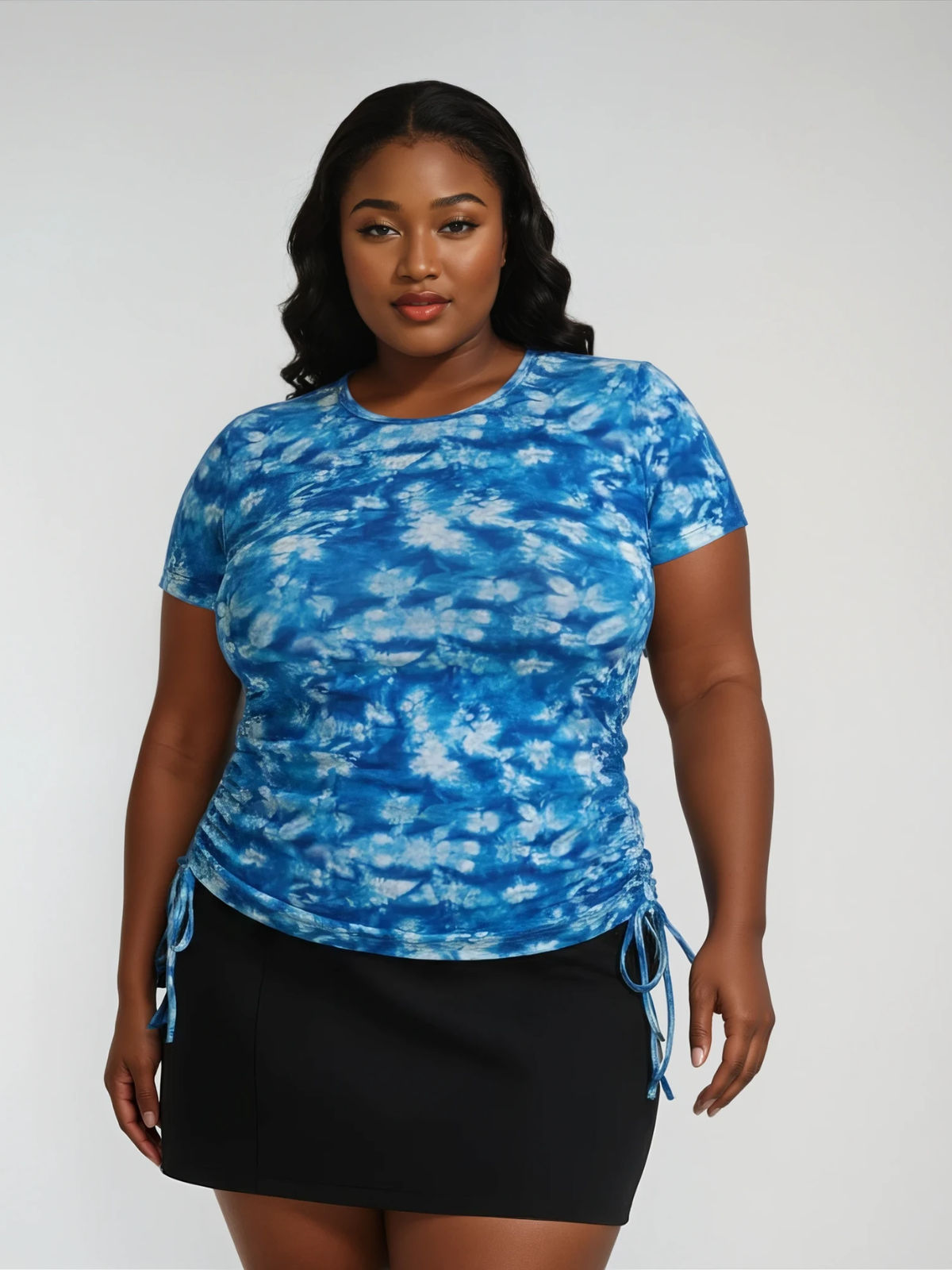 - Side ruching creates a flattering cinched look