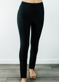 - Wide waistband sits just below your natural waist