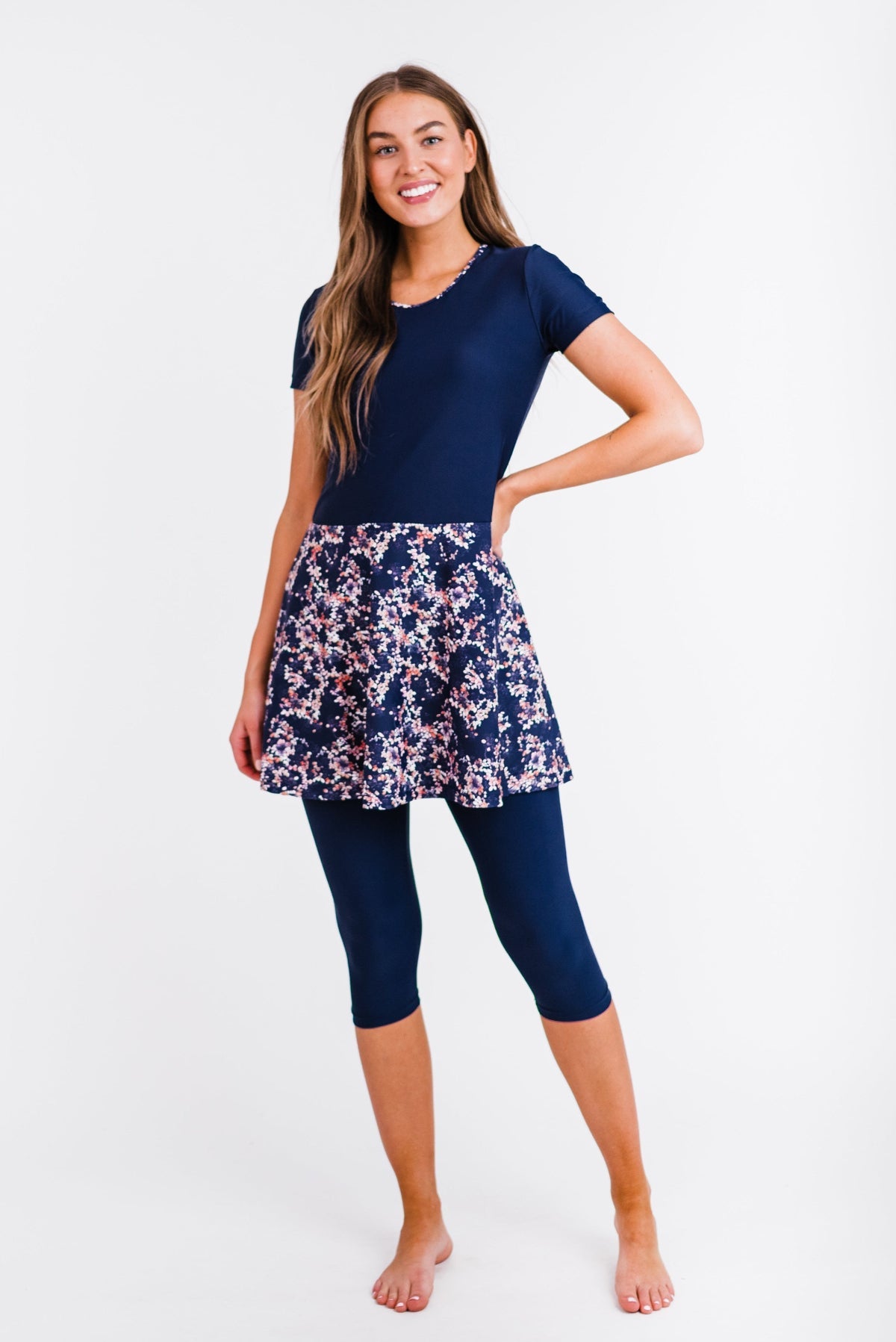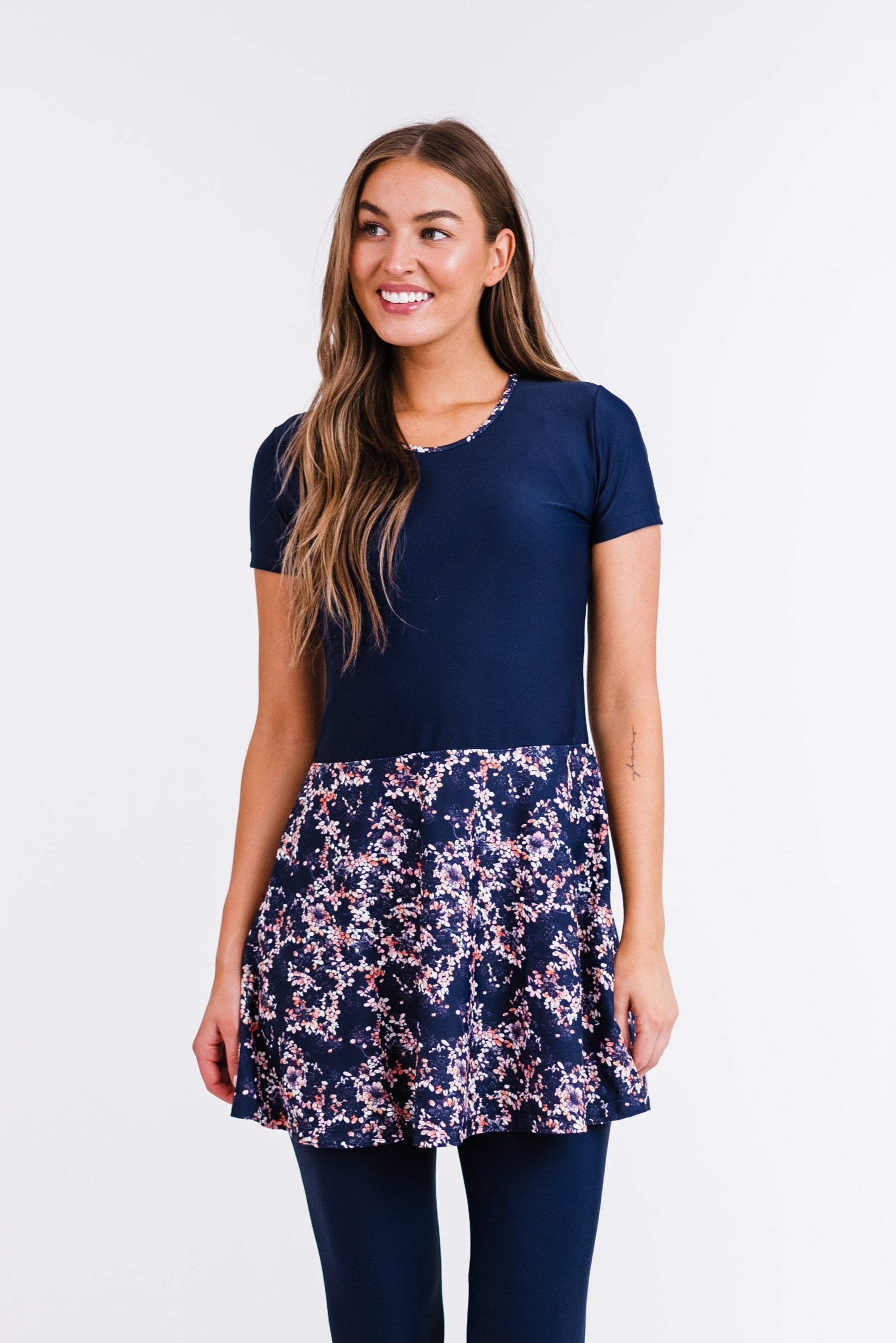 This fun and modest swim dress is the perfect thing to wear to the beach! Look cute and fashionable in our multitude of prints and patterns but stay modestly covered. This product does not have a built in bra. Pair it with your favorite swim bottoms to complete the look.